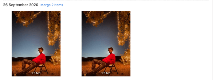 The time required for finding duplicates depends on the size of your library. Once done, you’ll see a list of duplicate photos and can start merging them.